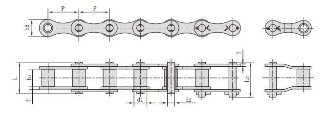 鏈號(hào) 節(jié)距 滾子直徑 內(nèi)節(jié)內(nèi)寬 銷軸直徑 銷軸長度 內(nèi)鏈板高度 鏈板厚度 抗拉強(qiáng)度 平均抗拉強(qiáng)度 每米重量